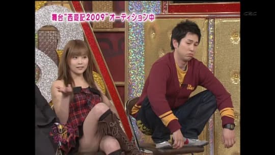 このあと江頭2:50に襲われて、スカートの中に顔を入れらていました、、、