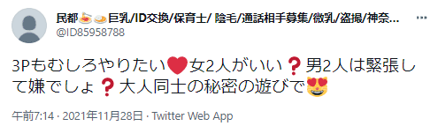 3P相手を募集しているのは、女の子が多いです。友達は準備済みなので、男性1人を募集してるっていうパターン。