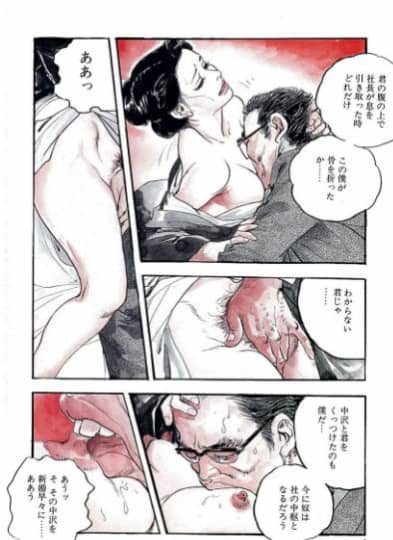 はげ親爺との69やセックス場面にもろ描写はないけど、それがまた想像を掻き立てるのは、さすがの画力です。