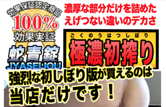 その名の通り"蛇"のエキスを濃縮した蛇青錠は、業界でも希少と言われる成分を含んでおり、ペニスの増大効果だけでなく「中折れ・不感・持続力」に悩む方にもおすすめです!