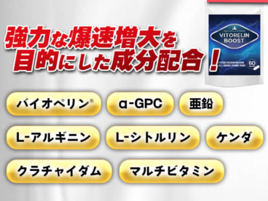 増大サプリ定番の成分配合はもちろん、ビトレリンブーストならでは成分も配合されています!