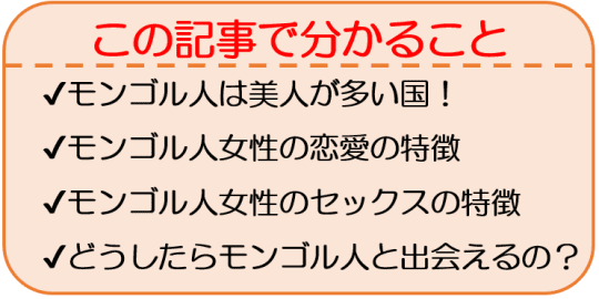 美人が多いモンゴル人女性が好むセックスを知り、美人でスタイル抜群の彼女と最高に気持ちいセックスをしちゃいましょう!
