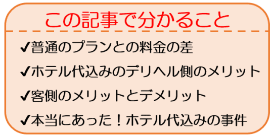 では実際にホテル代金込みのデリヘルと通常のデリヘルとでは何の差があるのでしょうか。