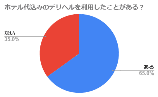 上記のアンケートは、普段からデリヘルを愛用されている一般の男性100人にホテル代金込みのデリヘルを利用したことがあるかどうかを調査したものになります。