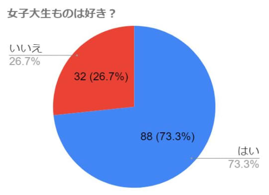 男性の7割以上が女子大生ものが好きだと回答しています。度合は違えど僕と同じような性癖を持っているんです。