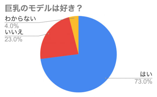 ネットで「巨乳のモデルは好き?」かを男性100名にアンケートを取ったところ、およそ7割の73%の男性が「好き」だと回答してくれました。