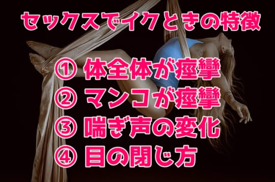 これは僕の経験上のお話ですが、女性がイクときの特徴は主に4つの反応で判別することができます。