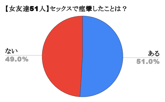 参考までに、僕の女友達51人にも「セックスで痙攣したことは?」でリサーチしてみたところ、このような結果になりました!