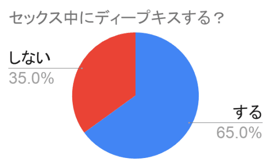 こちらの画像は、Twitterにて集まってくれた20~40代の男女100人に「セックス中にディープキスする?」とアンケートを取ったときの結果をグラフに表したものです。