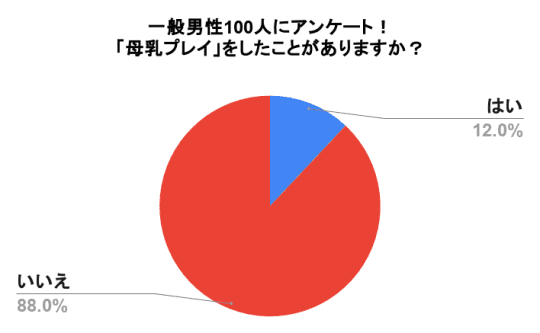 調査結果を見てみると、母乳プレイをしたことがある人は全体の12%!想像以上に少ないのです、、、。