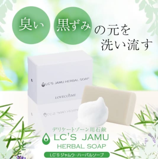 LCの「ジャムウ・ハーバルソープ」は、植物由来成分で、臭いや黒ずみなどの悩みにアプローチしてくれるソープ。