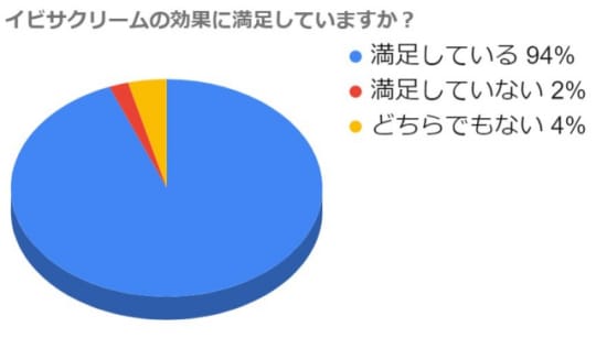 そんなイビサクリームを使っている20代から50代の女性50人に、イビサクリームに満足しているかどうかのアンケートを行ってみました。