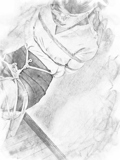 まずは手首に縄がかかり、続いて胸へ。縄が擦れる音が心地よく、目をつぶってそれを堪能していたときのことでした。