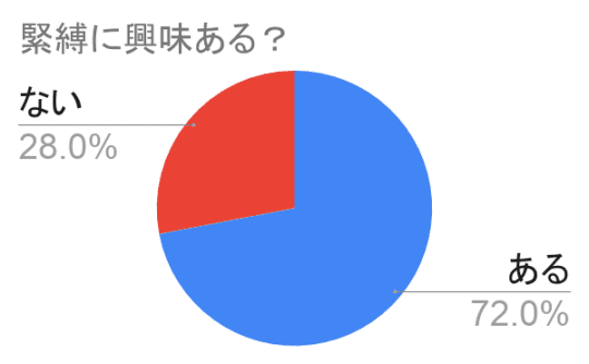 こちらの画像は、Twitterにて集まってくれた20~40代の男女100人に「緊縛に興味ある?」とアンケートを取ったときの結果をグラフに表したもの。
