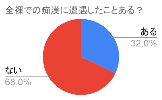 こちらの画像は、Twitterにて集まってくれた女性100人に「全裸での痴漢に遭遇したことある?」とアンケートを取ったときの結果をグラフに表したものです。