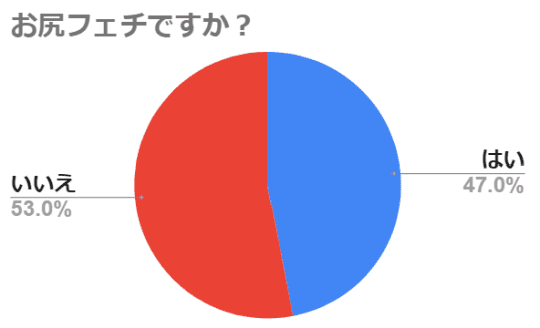 結果からわかるように、お尻フェチの人数は約半数ほど存在しており、お尻の人気が高いことが見てとれますね!
