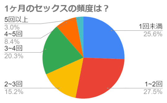 アンケートの結果、月に1〜2回体を重ねるカップルが1番多いことがわかりました!カップルのセックス頻度は交際期間によっても違うようです。