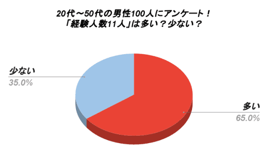 データを見ると、経験人数11人が多いと感じる男性は65%もいらっしゃいました。