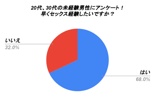 早くセックスをしたい人が68%というデータには納得です!私も早く童貞を卒業したかったですから、、、。