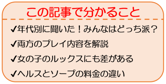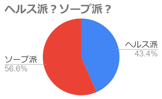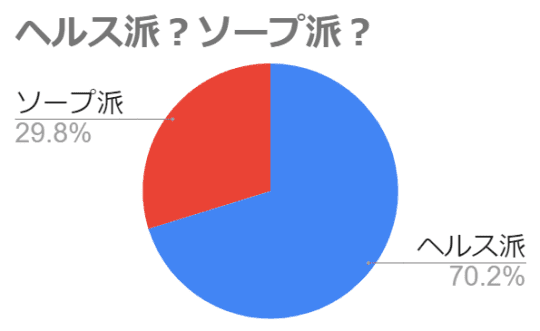 アンケート結果は、わずかな差ですがソープ派の勝利!しかし、ヘルス派も多いためどちらも人気であることが分かりますよね。