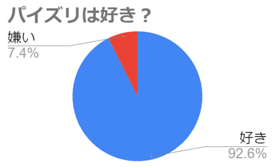 結果をまとめたグラフを見てみると、なんと9割越えの男性がパイズリ好きという結果に!そりゃそうですよね、だってパイズリは男のロマンですから(笑)