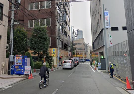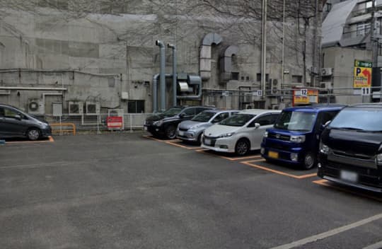 駐車場の前の通りは、車が行き来できるくらいの幅があります。