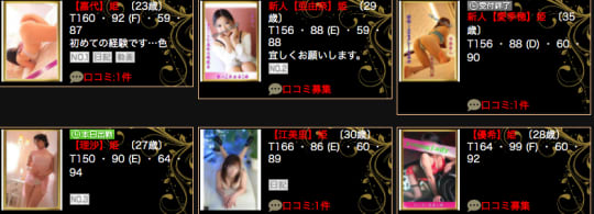 ジャンル | ヘルス | ヘルス | ソープ | デリヘル | デリヘル | デリヘル |