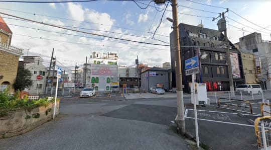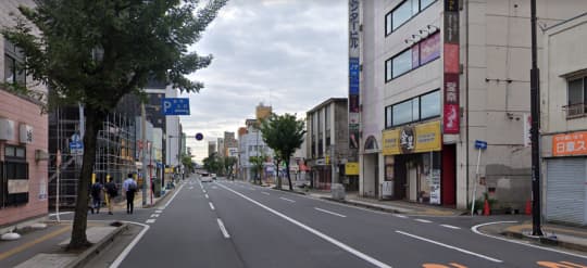 そのまま画像中央の十字路を左に曲がって、次の十字路まで進んでください。