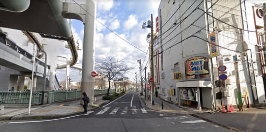 そのまま画像中央の道路を真っすぐ、2つ目の十字路まで進んでください。