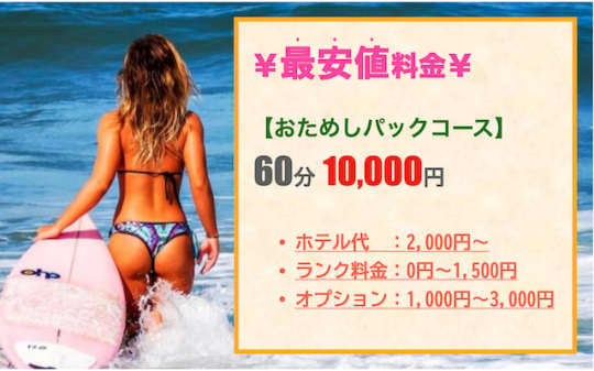AROMA性感倶楽部天王寺店を利用する場合の最安値料金は、「60分おためしパックコース」10,000円で楽しめる。