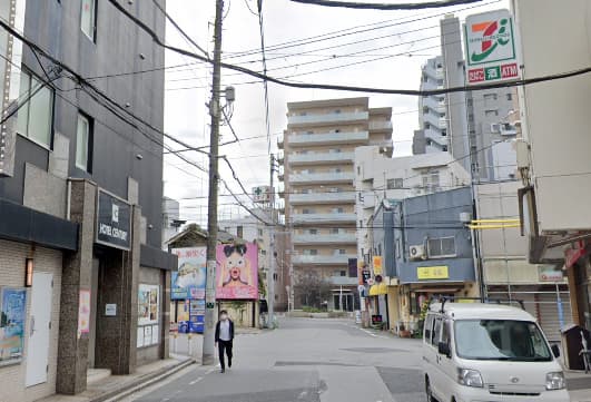 駅を背にして栄町仲通りを進んでくると右にセブンイレブンがある交差点があるので、その交差点を左に曲がって進みましょう。
