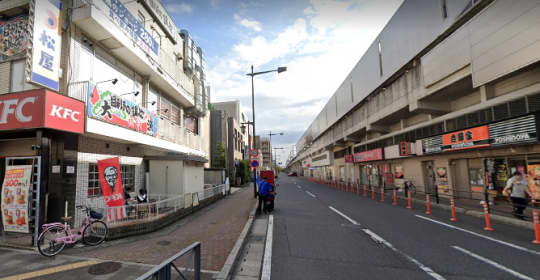 パライソの最寄り駅は越谷駅です。駅を出て右に直進します。