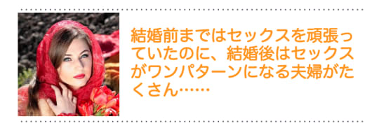 夫婦のセックスあるあるで結婚前まではセックスを頑張っていたのに、結婚後はセックスがワンパターンになる夫婦がたくさんいます。